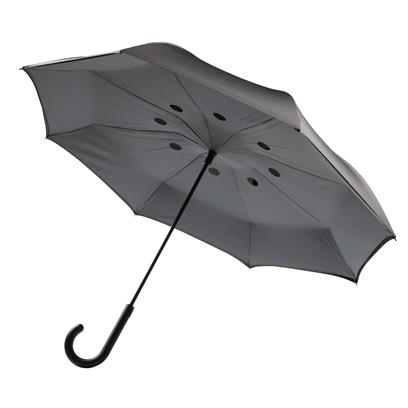 Este guarda-chuva reversível de 23” em tecido pongee, vai ser a tua opção para te proteger no Inverno que não tarda em chegar em 190T com abertura manual e fechamento automático.