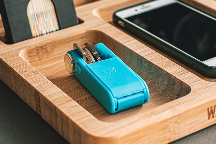 Dentro da caixa de proteção do Key Boss, há espaço suficiente para caberem 7 chaves convencionais e como green que somos, o feltro de PET é reciclado e usado para reduzir o toque das teclas.